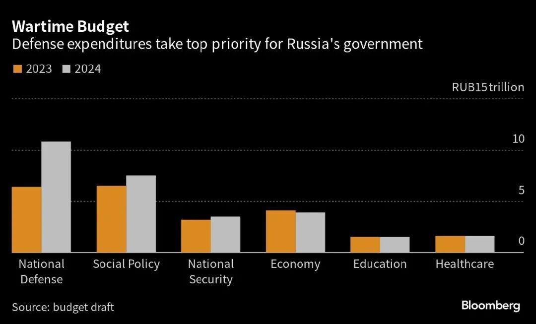 2023-2024年俄罗斯国防开支已有较明显涨幅