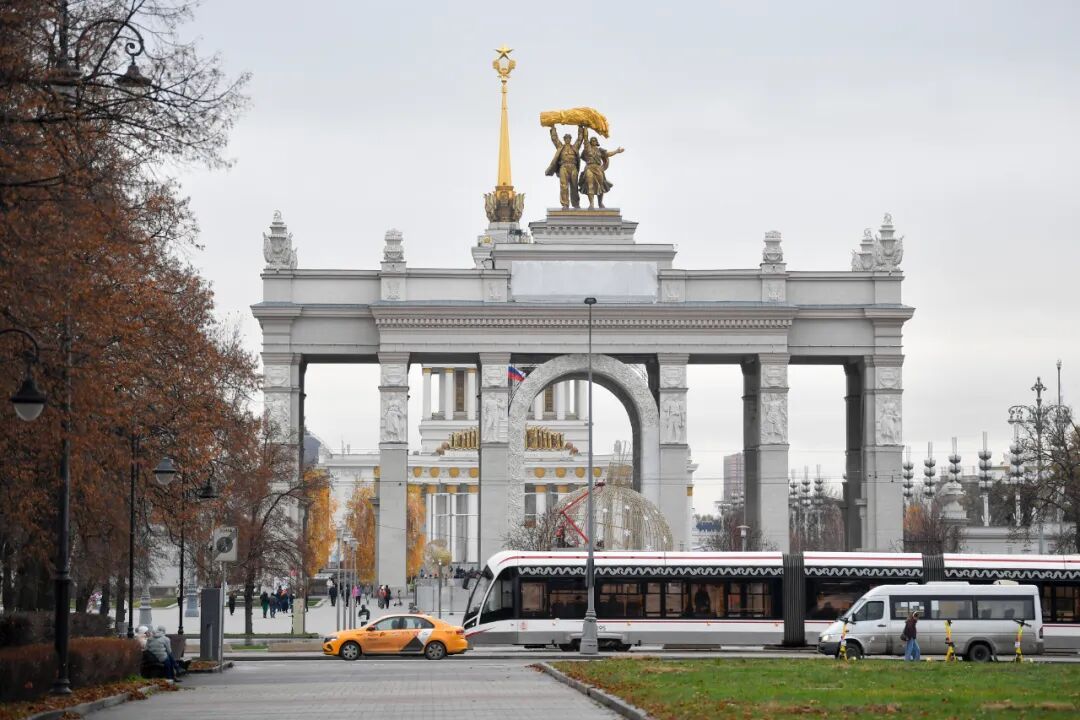 11月10日在俄罗斯首都莫斯科拍摄的国民经济成就展览馆。图源:新华社
