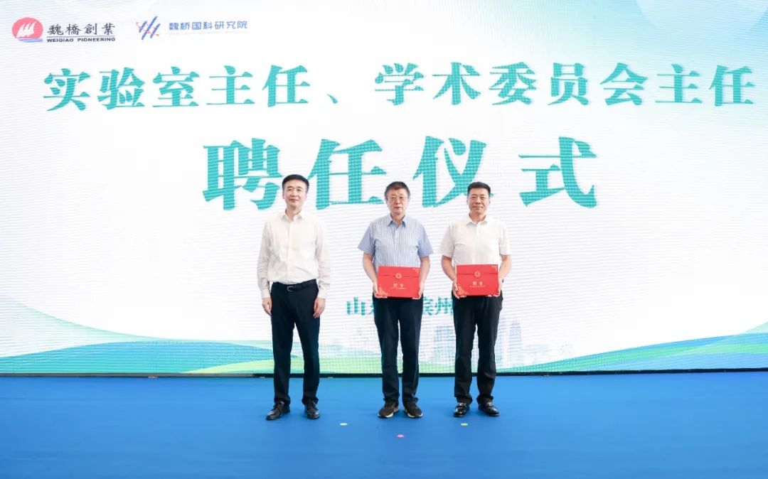中国科学院院士、金属基复合材料全国重点实验室主任、上海交通大学教授张荻,中国工程院院士、大型金属构件增材制造国家工程实验室主任、北京航空航天大学教授王华明(线上参会),中国工程院院士、亚稳材料全国重点实验室主任、燕山大学教授刘日平,中国科学院院士、苏州实验室副主任、北京航空航天大学教授蒋成保(线上参会);山东省科技厅党组书记、厅长孙海生,滨州市委书记宋永祥,滨州市委副书记、市长李春田,魏桥创业集团董事长张波等出席仪式。