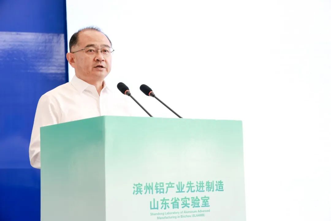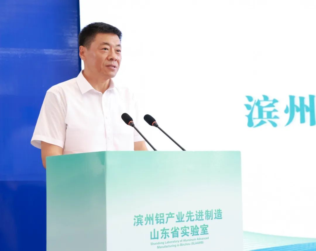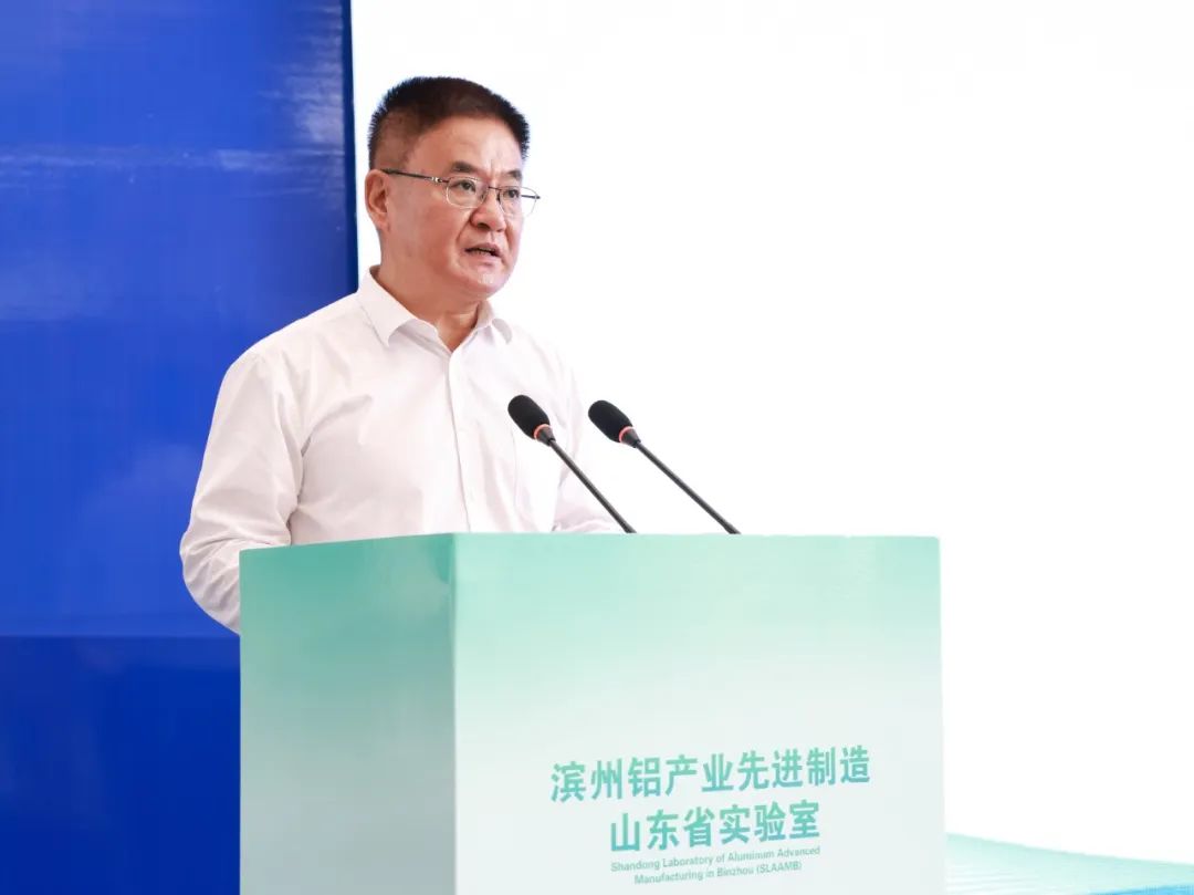孙海生宣读了《山东省人民政府关于滨州铝产业先进制造山东省实验室建设方案的批复》。他在讲话中指出,该实验室揭牌是山东科技创新领域的重要里程碑,对推动铝产业绿色低碳、高质量发展意义重大。希望实验室以魏桥创业集团工业制造体系为依托、以大院强所战略科技力量为支撑,集聚创新资源,探索新模式,加快建设具有全球影响力的铝产业创新高地。